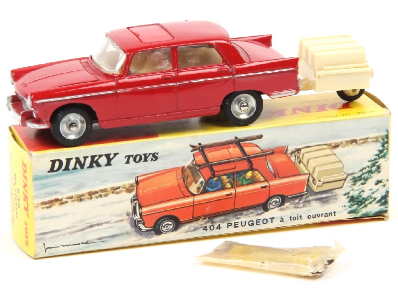 DINKY TOYS (FRANCE) 536 PEUGEOT 404 avec remorque monoroue (skis noirs) rouge