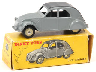 DINKY TOYS (FRANCE) 24T CITROËN 2CV (version avec 3 feux arrière) gris clair, capote gris foncé mat, jantes crème