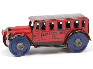 MARX TOYS (USA) 62 Autocar 'LIBERTY BUS CO' en tôle peinte rouge, noir & bleu