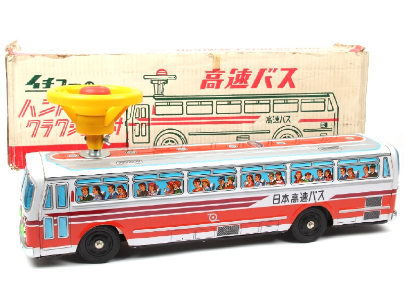 ICHIKO (JAPON) 48-01 Autocar en tôle lithographiée 2 tons de rouge, blanc & gris