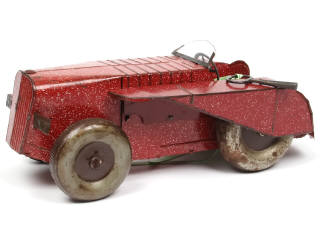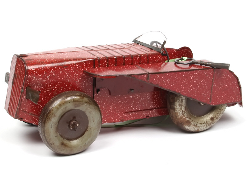 modèle produit en 1935/1936 - longueur 38 cm - avec moteur à clef (fonctionne), clef & phares électriques (non testés) - avec manques & traces d'oxydation - modèle vernissé