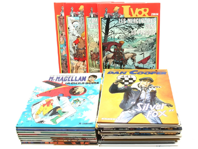 on y retrouve notammant les séries (EO et réeditions) : IVOR, Mr MAGELLAN & DAN COOPER - de bon à très bon état