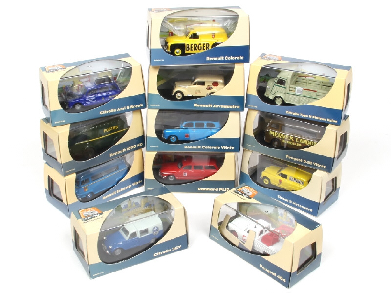 série 'LES PETITS UTILITAIRES FRANCAIS' - miniatures reproduisant les modèles : CITROEN, PANHARD, PEUGEOT & RENAULT