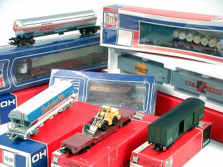 JOUEF 'HO' (FRANCE) Ensemble de 7 wagons de marchandises & 2 containers