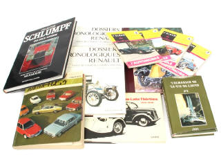 états de 'b' à 'c' - on y retrouve notamment les thèmes : RENAULT, L'ILLUSTRATION AUTOMOBILE (facimilé) & L'ALBUM DU FANATIQUE DE L'AUTOMOBILE - on y joint 5 livres sur l'automobile (non présents sur la photo)