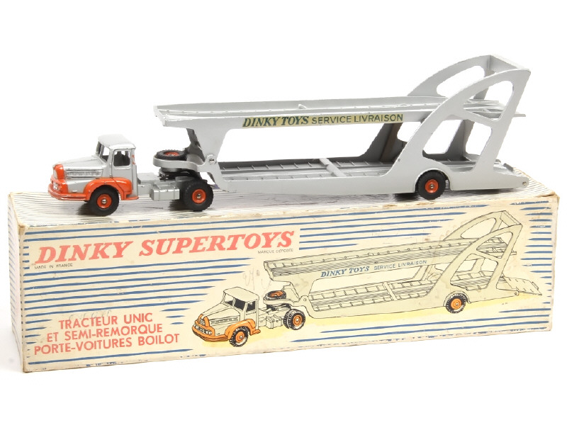DINKY TOYS (FRANCE) 894 UNIC Porte-voitures 'BOILOT' (version avec jantes concaves) gris métal & orange