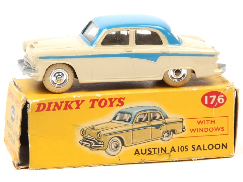 DINKY TOYS (GB) 176 AUSTIN A 105 Saloon beige, filets & toit bleu, jantes aluminium