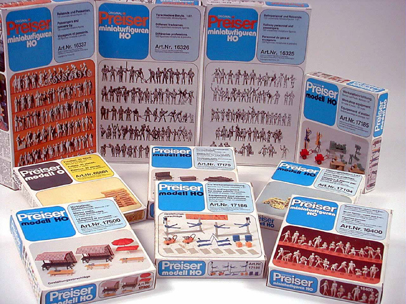 PREISER 'HO' (ALLEMAGNE) Ensemble de 10 boîtes d'éléments de décoration