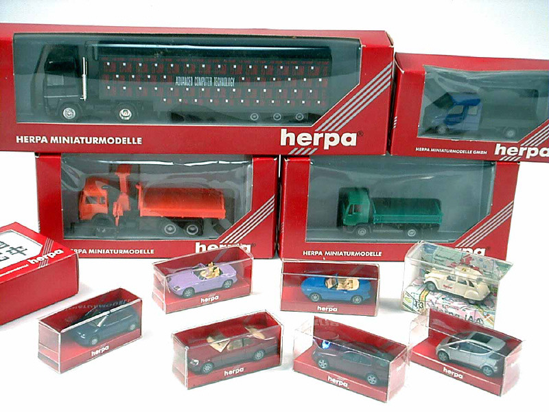 HERPA 'HO' (ALLEMAGNE) Ensemble de 4 camions & 7 voitures