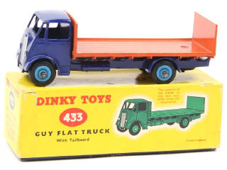 DINKY TOYS (GB) 433 GUY Plateau avec dosseret outremer & orange, jantes bleu vif