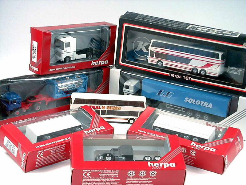 HERPA 'HO' (ALLEMAGNE) Ensemble de 7 tracteurs routiers, 4 remorques & 2 autocars