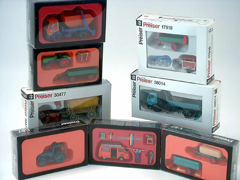 PREISER 'HO' (ALLEMAGNE) Ensemble de 8 coffrets de véhicules & accessoires