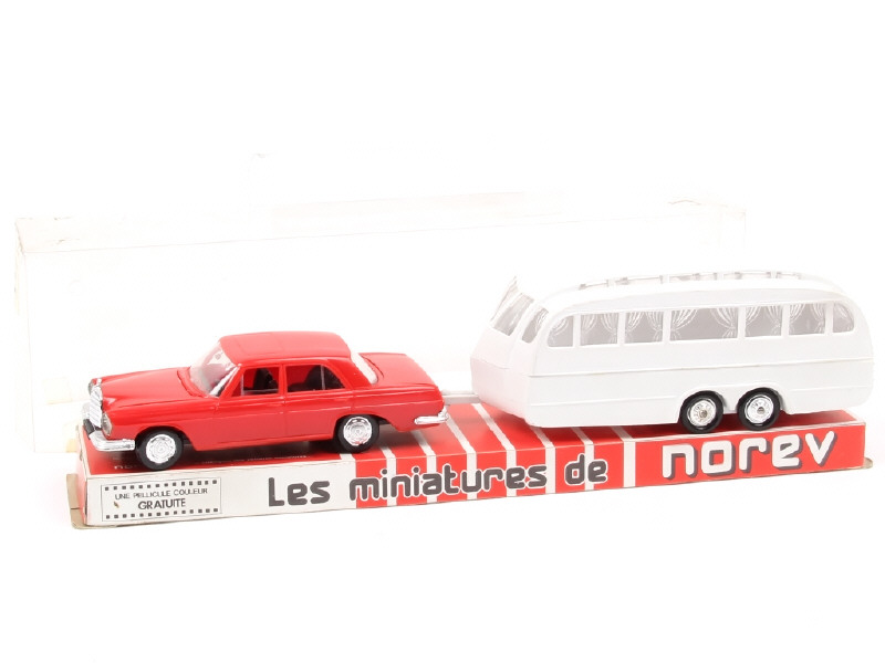 contient : MERCEDES 250 SE & caravane - avec cale en plastique