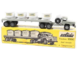 SOLIDO (FRANCE) 301 UNIC Semi-remorque plateau transport de ciment gris & blanc
