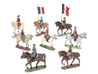 QUIRALU (FRANCE) Ensemble de 7 soldats français sur leur monture