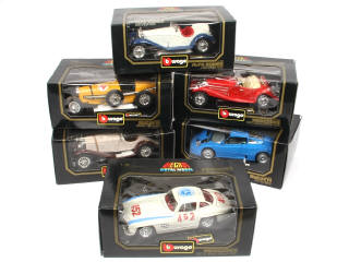 échelle 1/18ème - comprend : MERCEDES (3 exemplaires différents), BUGATTI (2 exemplaires différents) & ALFA ROMEO 2300 spider