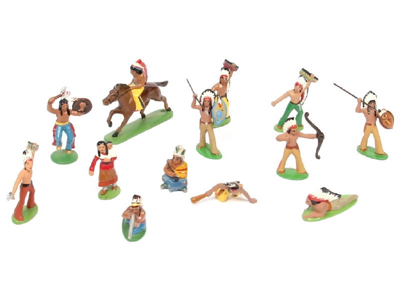 QUIRALU (FRANCE) Ensemble de 13 indiens & un cheval