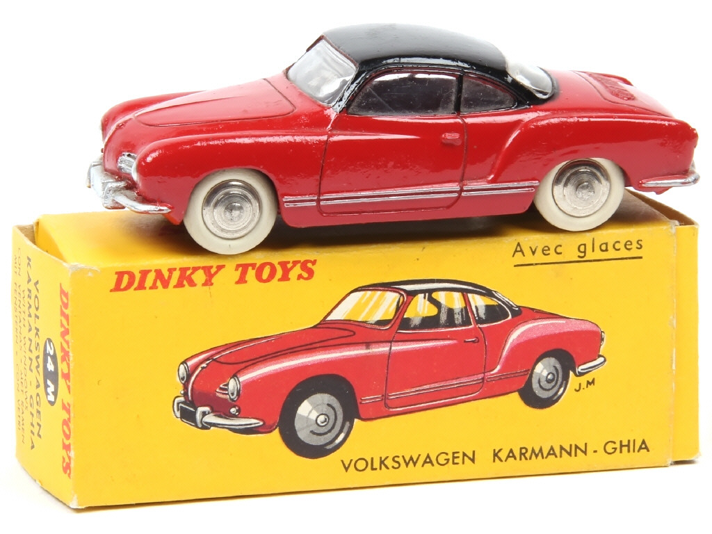 DINKY TOYS (FRANCE) 24M VOLKSWAGEN KARMANN GHIA (2ème version avec avant plat & jantes convexes) rouge, toit noir