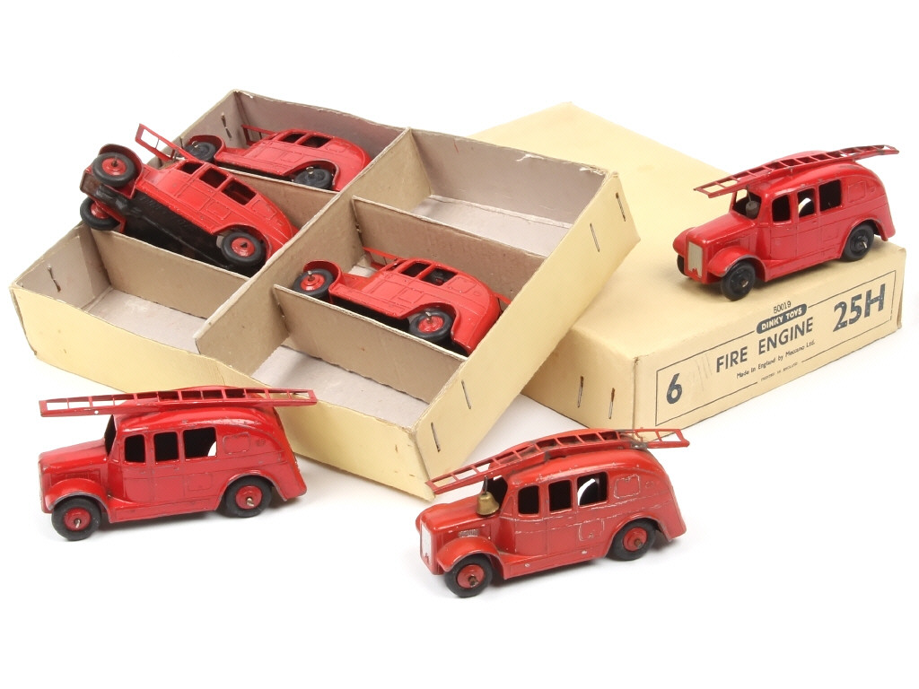 DINKY TOYS (GB) Ensemble de 6 camions aérodynamiques de pompiers avec échelle rouge