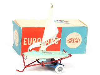 C.I.J. (FRANCE) 3/76A Voilier sur sa remorque bleu ciel, blanc & bleu