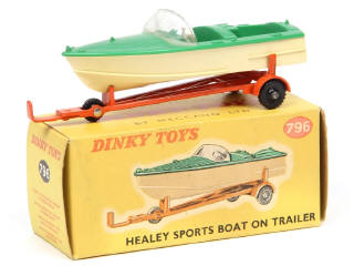 DINKY TOYS (GB) 796 HEALEY SPORTS BOAT avec remorque orange, crème & vert