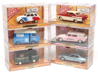 comprend les modèles : RENAULT ESTAFETTE 'NICOLAS', 'CAMPING CAR', CITROEN 2CV, ID break 'ASPRO', SM & SIMCA CHAMBORD 1961 - quelques pneus coupés
