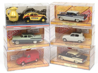 comprend les modèles : SIMCA CHAMBORD 1958, 1961, R3 1961, 2CV AZU 1955 & 'BERGER' - quelques pneus coupés & une fêlure sur une boite