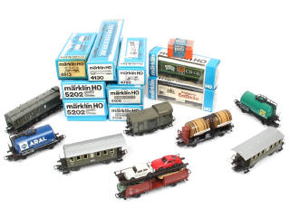 MÄRKLIN 'HO' (ALLEMAGNE) Ensemble de 12 matériels & accessoires ferroviaires