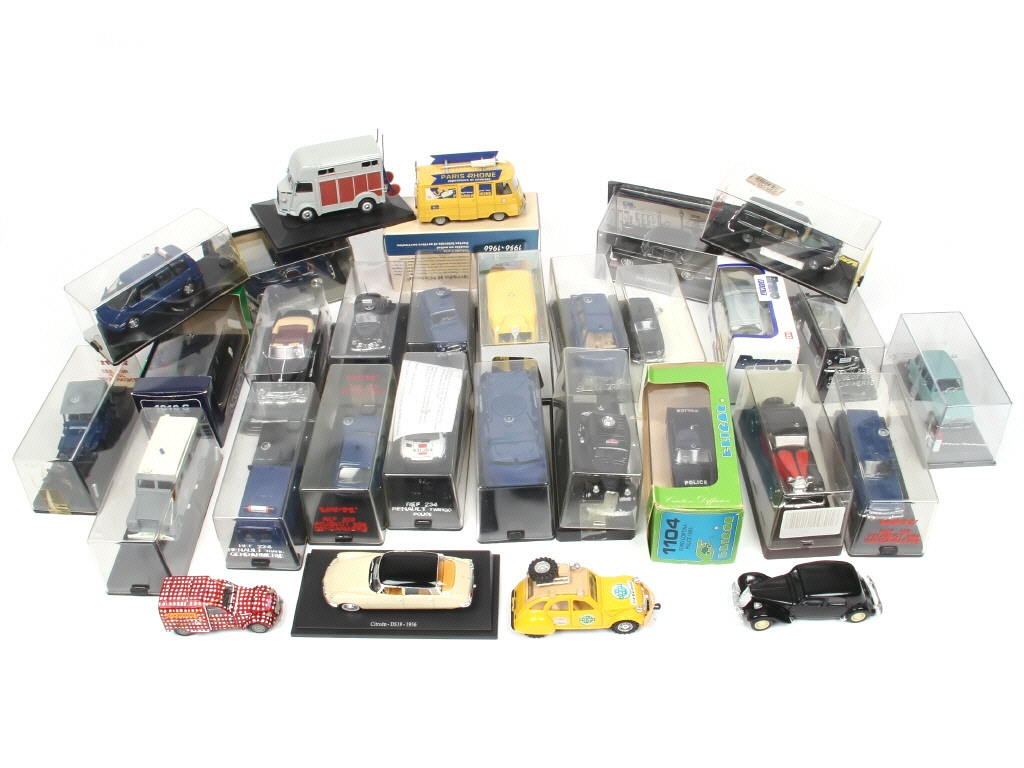 états de 'A+' (majoritairement) à 'B' - miniatures reproduisant notamment les modèles : CITROËN, PEUGEOT, SIMCA, FORD & BUGATTI - on y retrouve notamment les marques : VEREM, ELIGOR & SOLIDO - certains véhicules sans boîte - quelques petits manques & parties cassées