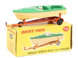DINKY TOYS (GB) 796 HEALEY SPORTS BOAT avec remorque orange, crème & vert
