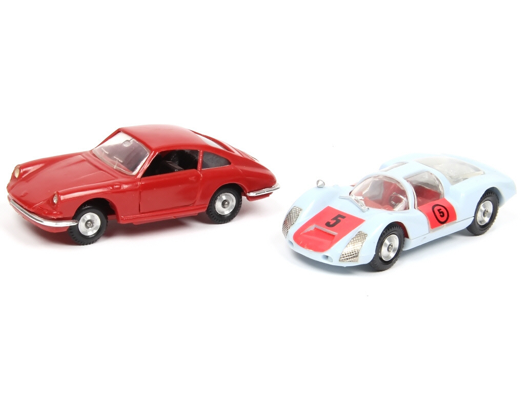 série 'CHIQUI CARS' - comprend les modèles : 912 & CARRERA 6 - manque un rétroviseur & une extrémité de pare-chocs - un phare opacifié