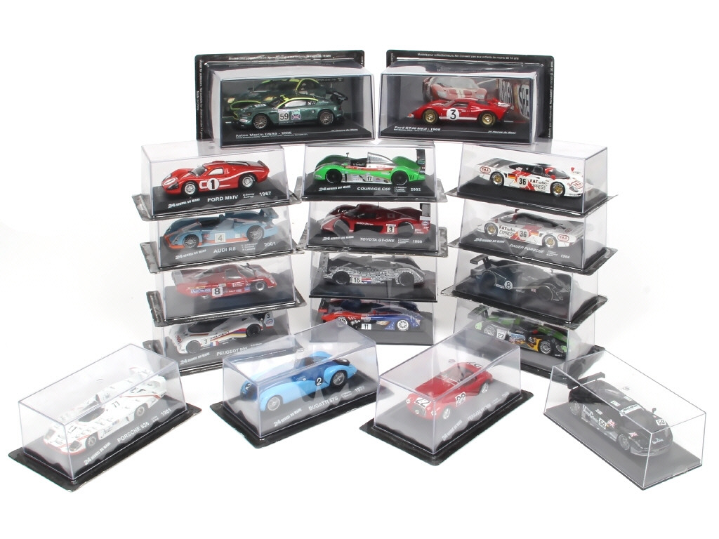 modèles vendus en kiosque - miniatures reproduisant notamment les modèles : RONDEAU, PEUGEOT, AUDI, TOYOTA & LOLA