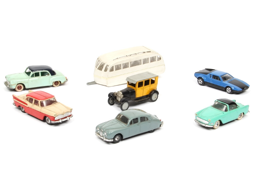 états de 'B' à 'D' - miniatures reproduisant les modèles : RENAULT, SIMCA, JAGUAR, CITROEN & DE TOMASO (avec parties repeintes) - quelques éléments manquants & cassés - carrosseries encrassées