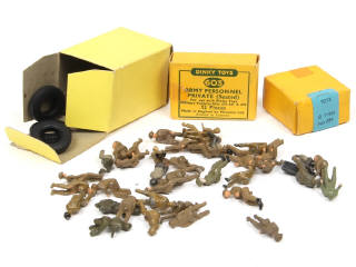états de 'A' à 'E' - comprend : des soldats (dont 12 en boite & d'autres non d'origine) & des pneus (références 096 & 099) - avec petits manques & parties cassées