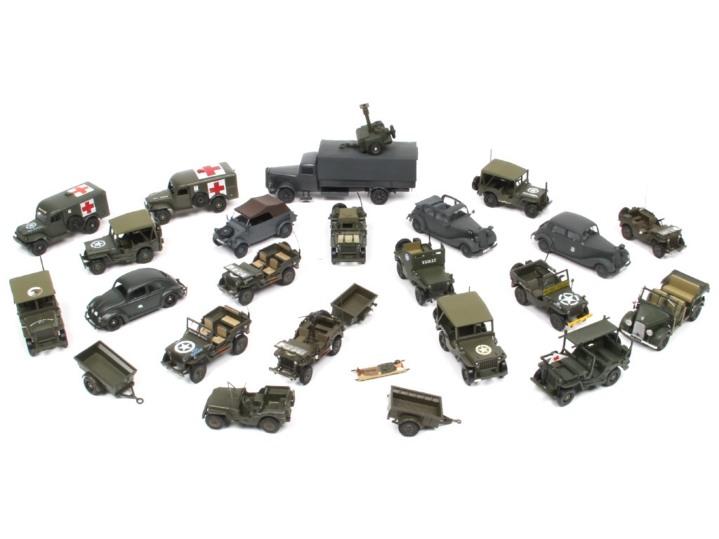 états de 'A' à 'R' - miniatures reproduisant notamment les modèles : MERCEDES, JEEP, VOLKSWAGEN & DODGE - on y retrouve les marques : SOLIDO, VITESSE & DINKY TOYS FRANCE - certains exemplaires transformés - quelques petits accessoires manquants & d'autres cassés