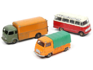 comprend : RENAULT ESTAFETTE, MERCEDES petit autocar & SIMCA CARGO (pneus non d'origine) - avec manques & parties cassées