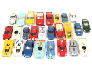 états de 'B' à 'C' - miniatures reproduisant notamment les modèles : PORSCHE, RENAULT, LOLA, CHEVROLET & BENTLEY - on y joint une TOYOTA 2000 GT de la marque MEBETOYS en état 'E' - quelques petits manques & parties cassées