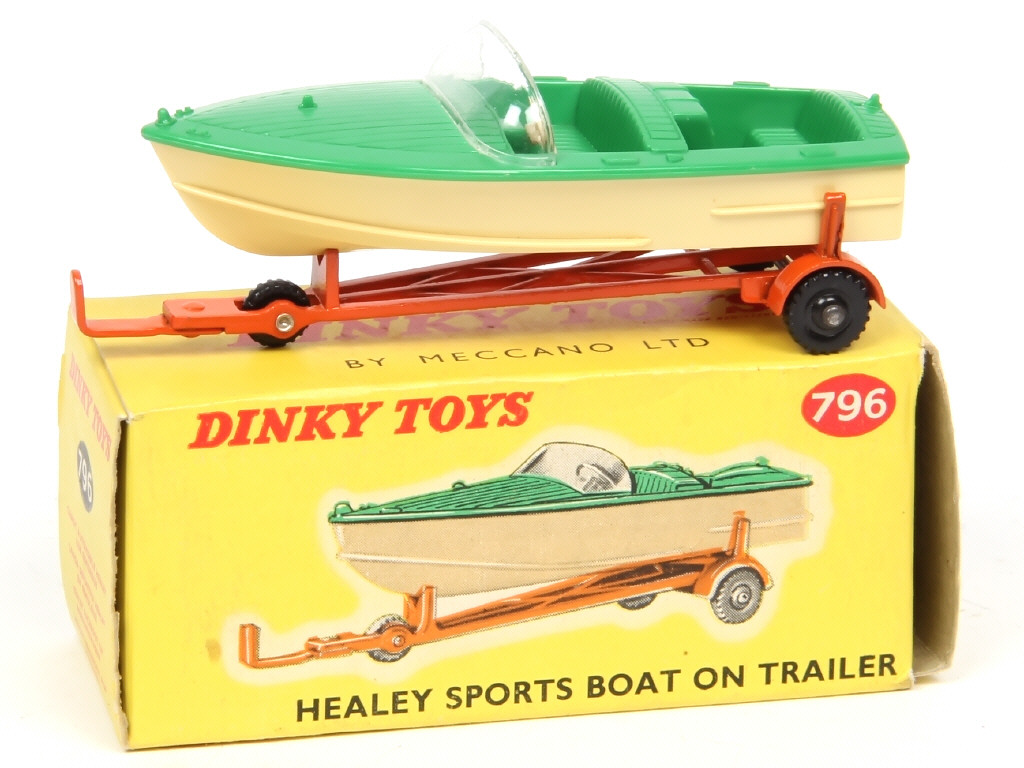 DINKY TOYS (GB) 796 HEALEY SPORTS BOAT avec remorque orange, crème & vert