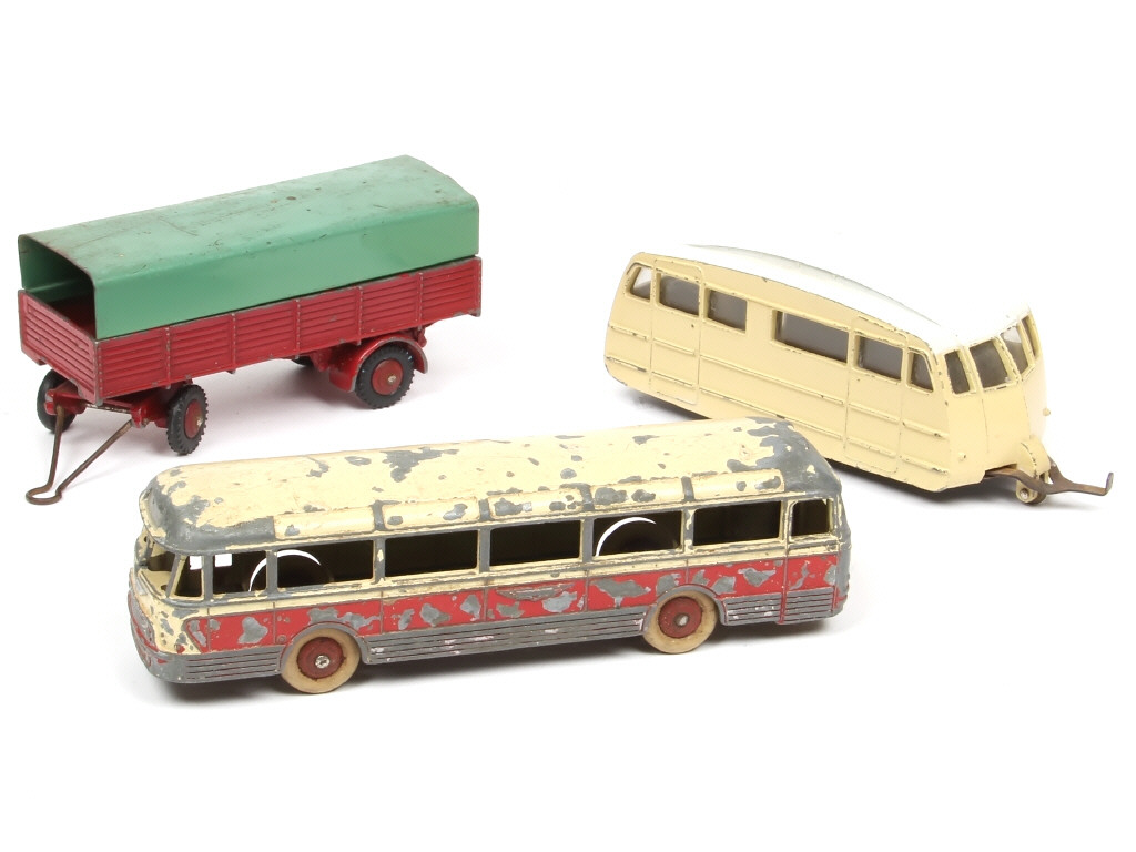 DINKY TOYS (FRANCE) Ensemble d'un autocar CHAUSSON, une remorque & une caravane