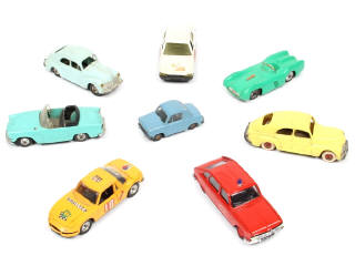 différentes compositions - états de 'A' à 'D' - comprend notamment les modèles : MERCEDES, SIMCA, MATRA, RENAULT & PEUGEOT - avec petits manques, parties déformées & cassées - quelques carrosseries encrassées - légères traces d'oxydation