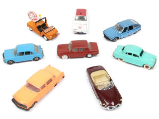 différentes compositions - états de 'A' à 'D' - comprend notamment les modèles : OPEL, MG, CITROEN, RENAULT & PEUGEOT - avec petits manques, parties déformées & cassées - quelques carrosseries encrassées - légères traces d'oxydation