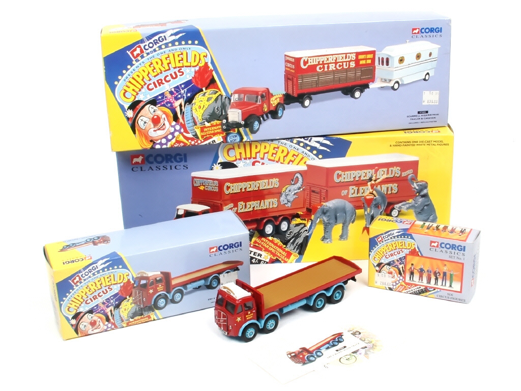 CORGI TOYS (GB) Ensemble de 3 camions 'CHIPPERFIELD'S & une boîte de figurines