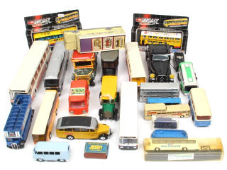 états de 'A+' à 'F' - on y retrouve notamment les marques : DICKIE, WELLY, HERPA, NZG, WIKING, MAJORETTE & DINKY TOYS GB - avec manques & parties cassées - certains véhicules en boîte