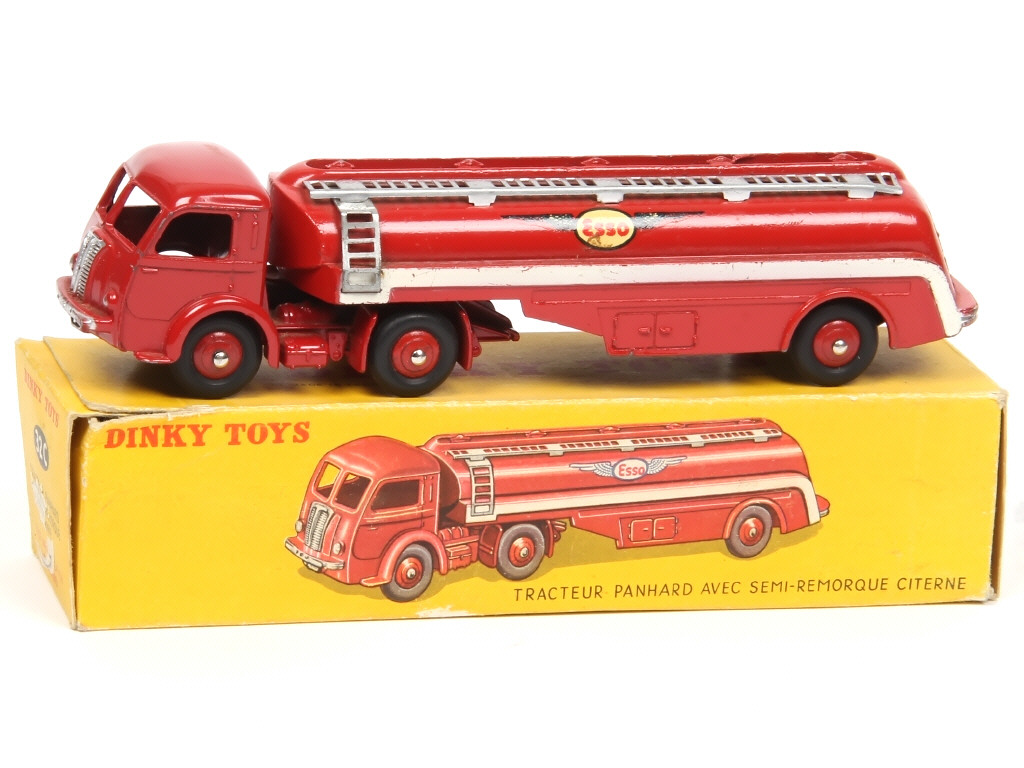 DINKY TOYS (FRANCE) 32C PANHARD Semi-remorque citerne 'ESSO' (version avec jantes convexes) rouge (décalques 'petites ailes')