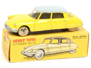 DINKY TOYS (FRANCE) 24CP CITROËN DS 19 (version avec vitres & jantes convexes) jaune citron, toit gris clair