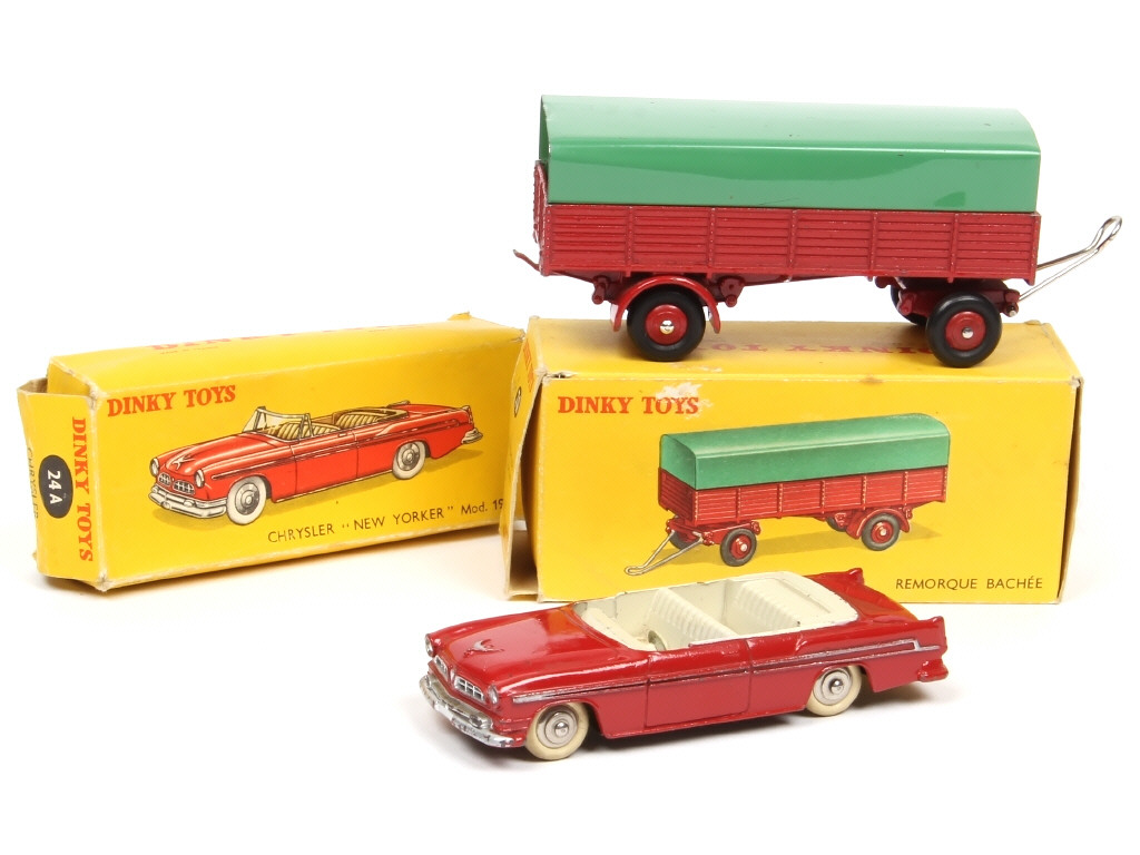 DINKY TOYS (FRANCE) Ensemble d'une CHRYSLER NEW YORKER & une remorque bâchée