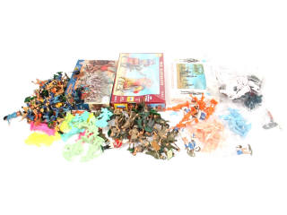 états de 'A+' à 'R' - comprend notamment : soldats allemands, américains, anglais, mousquetaires, cow-boys, indiens, Moyen-age & majorettes - on y retrouve notamment les marques : ZVEZDA, ITALERI & STARLUX - possibilités de petits manques & parties cassées