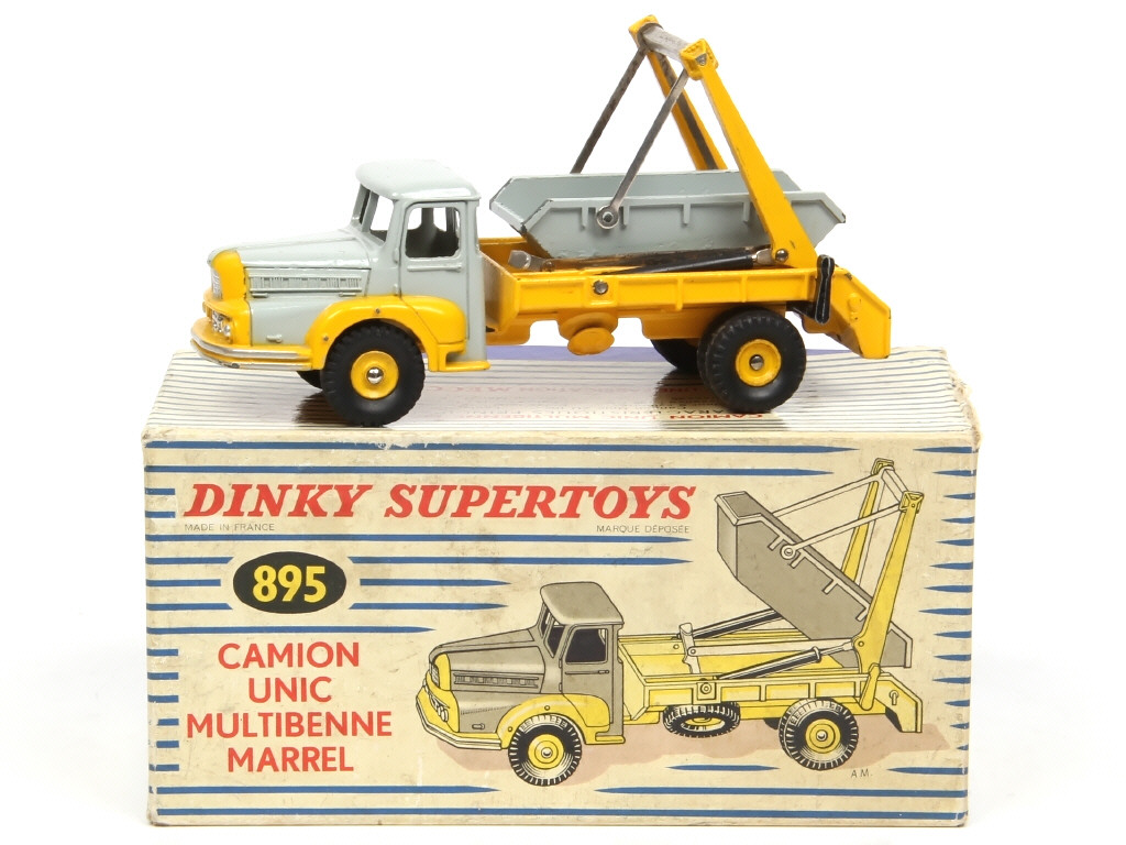 DINKY TOYS (FRANCE) 895 UNIC Multibenne MARREL (version avec jantes concaves) jaune d'or & gris