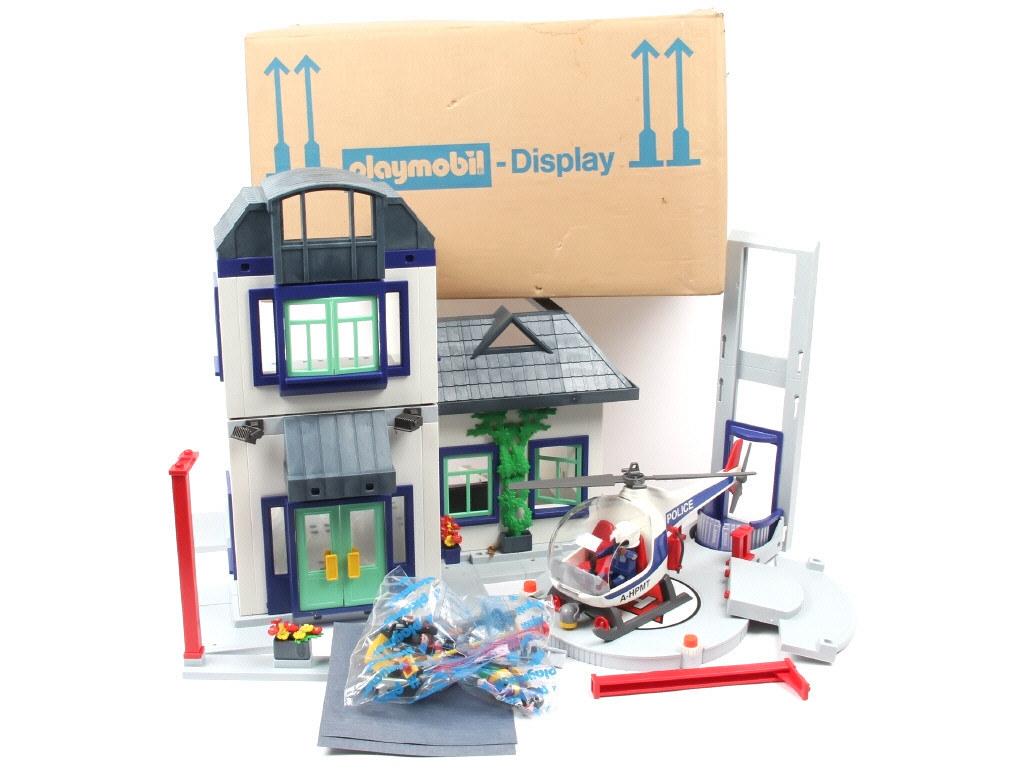 dimensions approximatives : 46x30x38 cm - avec personnages, accessoires (dont un hélicoptère) & différents éléments à assembler (dont certains sous sachet jamais ouvert) - ensemble étant destiné à un magasin de jouets pour promouvoir les dernières nouveautés de la marque (avec son carton d'expédition d'origine daté du 18/03/1998) - possibilité de petits éléments manquants