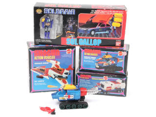 série SHOGUN - comprend les références : 2731 (boite en état 'c'), 2733 & 2990 - avec accessoires - on y joint un véhicule 32523 de la marque BANDAI (non testé - étiquettes de prix collées sur une face)